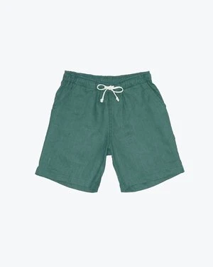 A deep green drawstring short made with sustainably-grown French linen and washed with biodegradable softeners.