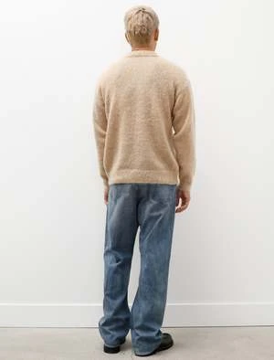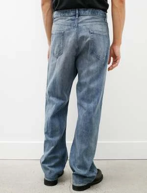 A relaxed fitting, straight legged pair of jeans cut from a lightweight faded indigo denim with a wrinkled fade pattern. Features classic four pocket denim styling with rivet reinforcement at the front pockets and a brass tone zip fly with a tack button closure. The straight leg offers a roomy seat and sits away from the body with a very gentle taper at the inseam from the knee down. Constructed with flat felled seams through the seat and a selvedge cut outseam for a superior hard wearing finish that will last many years to come; contrast stitching in white throughout.