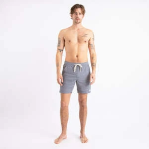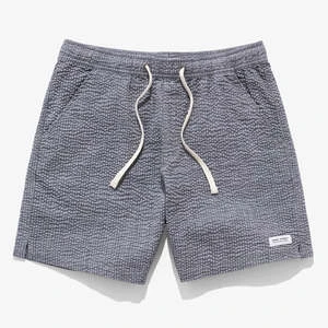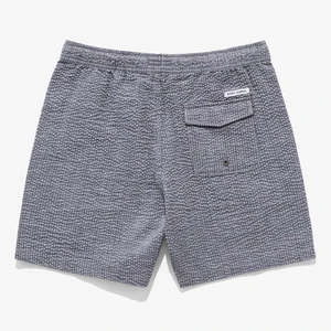 This boardshort is made with seersucker fabric, and features an elastic waistband, 17 inch outseam, Cotton drawcord, Mesh pockets and back patch pocket, Recycled polyester woven labels.