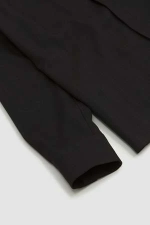 Spread collar. Concealed button closure at front. Single-button barrel cuffs. Tonal hardware.