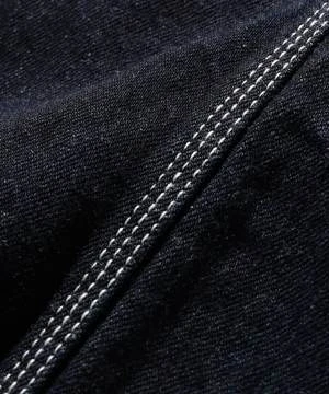 Uses 12oz denim. Because it is woven using uneven threads both vertically and horizontally, the fabric has an uneven feel, and by adjusting the number of warp threads, it is made soft.