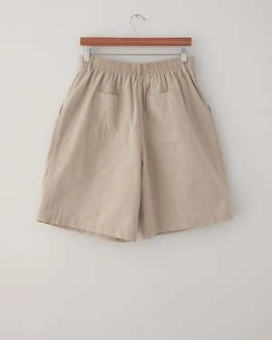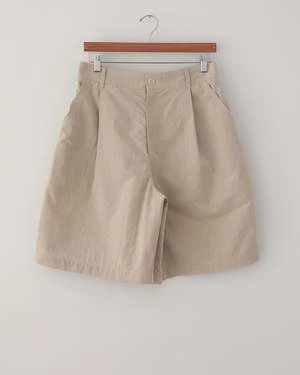 A new iteration of the classic colbo single pleat shorts made from a Japanese blend of cotton and paper (!) for a natural look and feel with a wide opening and back elastic. Features 2 side pockets, 2 back pockets, an Italian lampo zipper, and a natural corozo button for closure with taped seams throughout. Made in New York.