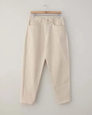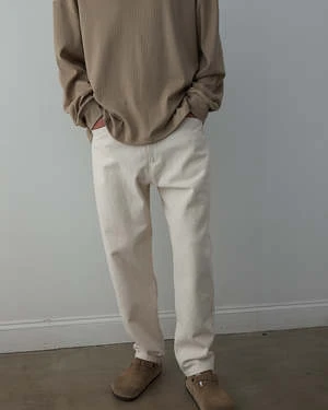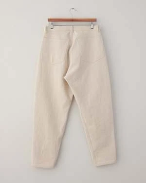 Five-pocket elongated and tapered jeans made from 12oz usa denim featuring a vintage deadstock talon zipper + a korean nickel button and rivets. Comes in both natural and a light wash blue. Made in new york.