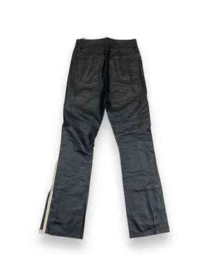 Slight bootcut with white stripes running along the outer seam and slits at leg opening. Made from a vegan leather alternative derived from organically grown cactus.