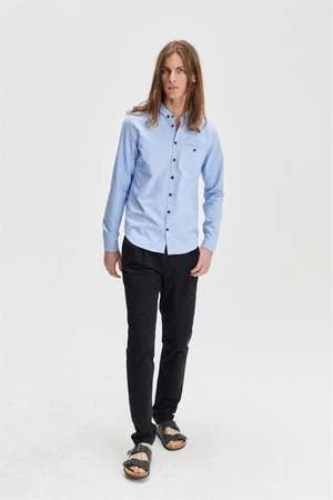 Finest Portuguese Oxford Pre-washed, slim fit 100% Cotton One chest pocket True to size, long sleeve, slim fit Model is 62/189cm tall, with a 36/93cm chest and wears size M Machine wash at 40C