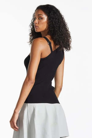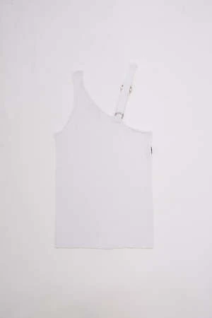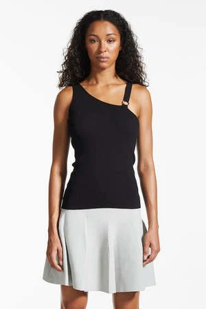 Highlighting its substantial hardware, the One Shoulder Knit Tank exudes a perfect blend of softness and toughness. The wide shoulder strap is adjustable to ensure optimal comfort under the armpit and all around. Featuring our logo embroidery.