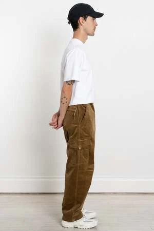 It is made of corduroy with slightly thicker ridges, which is ideal for the fall and winter season and has a webbing belt in the same color as the main material, which give the pant a refined impression