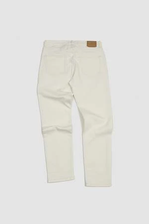 Tapered is a modern take on the classic 5-pocket fit, reimagined for the twenty-first century. Featuring a zip fly, elongated mid-rise waist and tapered leg. Made in undyed creamy white organic denim, combining the robust texture of classic jeans with a hint of stretch.