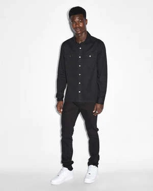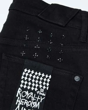 The Chitch Krystal is made from premium comfort stretch denim in a black colourway with diamante crystal Ksubi logo and branding. This slim fit, tapered cut jean is a mid rise length and is detailed with five pockets, a button fly and unique Ksubi angled dutch tab and tucks.