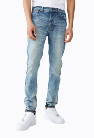 The Chitch jean is a contemporary style jean in a tapered leg, constructed in premium stretch denim. In a low rise, it has branded hardware, five pockets, Ksubi cross embroidery at the reverse, and statement raw-cut hems.