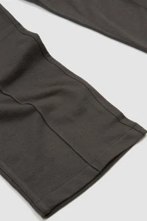 The Textured Band Pant has a formal look with lounge-like feel. Featuring a comfortable elastic waist and a loose fit with two side slash pockets. Pin tuck center seam with binded outseam.