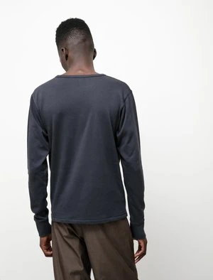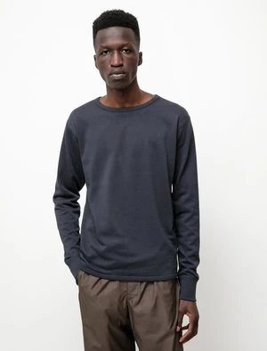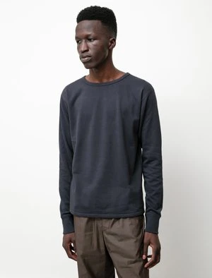 A regular-fitting long sleeve t-shirt in a medium-weight terry fabric. Constructed with ribbed neck and cuffs and flatlock stitching throughout. Cut slim through the body and sleeves with a slightly cropped length.