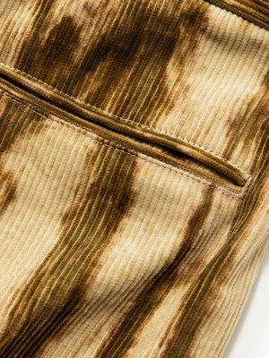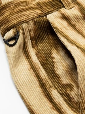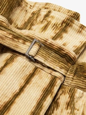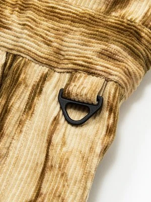 The meanswhile Dyed Corduroy Fat Wrap PT in Stratum is a stunning reinterpretation of the the traditional Thai “Wrap Pant” done up in an 8-wale woven corduroy fabric with thick ridges. Each pair is then individually dyed by hand in an incredible “Stratum” design with vertical striations that are striking in combination with the thick-wale cotton corduroy base-textile. The Fat Wrap PT features an integrated webbing belt and D-ring detailing as well as two side pockets, and two welt pockets at the rear. The trousers can be worn belted in and high-waist or belted in and folded over for a variety of styling options. The ultra-wide and eye-catching straight leg silhouette is truly unique, and as we often find ourselves saying with meanswhile . . . we’ve never seen anything quite like it. Please note that as each item is dyed one-by-one, the resulting pattern may differ slightly from the pants pictured here.