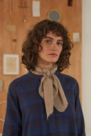 This cashmere pashmina reveals the virtuosity of our craftsmanship. Timeless of our brand, it comes back every year with a new color. The diamond weaving gives it all its grandeur. It gives it an incomparable touch. The scarf is worn during the day in a triangle around the neck, tucked into the collar of your cardigan or your coat.