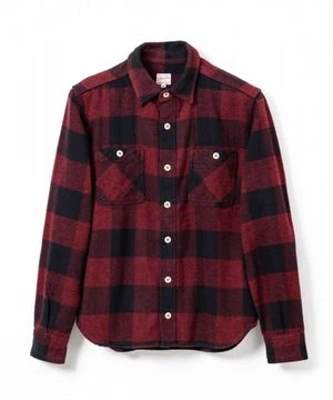 Momotaro Jeans’ original check shirt made of “MIKOYORI” herringbone fabric, which is woven from three twisted threads. The fabric is moderately thick and has a raised surface for a warm feel.