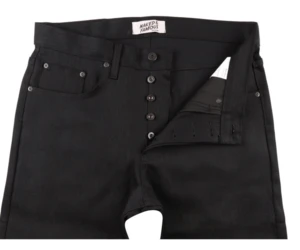The Black Power Stretch is a 12oz denim dyed black on both the warp and weft for a solid black color tone. The dye is resistant to fading to ensure the jeans stay blacker longer. Made with 5% stretch for increased comfort and incredible stretch recovery performance that allows the jeans to snap back to shape wear after wear. Other details include tonal stitching, full grain black leather patch, and black mil-spec non-reflective waist button and rivets.