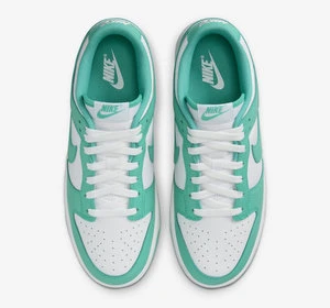 Dressed in a White and Clear Jade color scheme. This offering of the Nike Dunk Low comes constructed in a full leather build with mesh tongues and lining. It features a White base with Clear Jade overlays, Swooshes, and rubber outsole. White tongues, laces, embroidered branding on the heels and midsole completes the design.