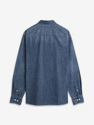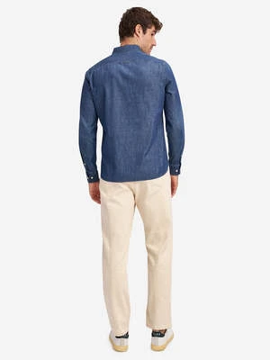 This Fulton Indigo Twill shirt delivers sophistication with its crafted pocket and embroidered logo, comprised of 80% Cotton and 20% Hemp for a lightweight and comfortable feel.