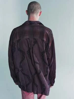 Our Borrowed Shirt in Antique Wallpaper Print. Produced in a Chinese cotton and silk blend fabric with our Antique Wallpaper print, the mens Borrowed Shirt has a wide oversized cut and features mother of pearl buttons, an Our Legacy neck tag, a single chest pocket, mitered cuffs and a curved hem. This garment is manufactured using a fine and delicate material, carefully sourced for its particular characteristics. The garment shall be shaped by its wearer and naturally distress over time to finish the design process.