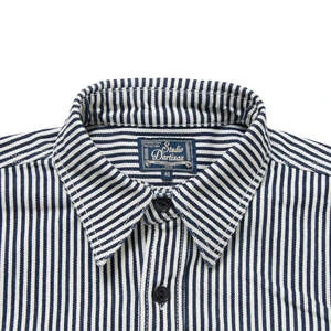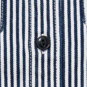 Hickory joins the popular classic work shirt. The 14oz and slightly thicker fabric is left as it is, and it is finished with a clean hickory stripe.