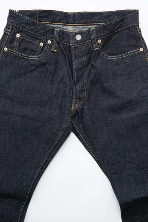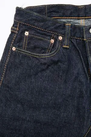 14 oz original deep color selvedge denim. Slim straight. One wash.