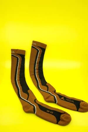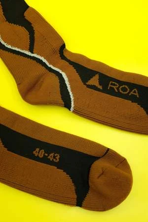 Knee high socks in contrast knit Dryarn fibers. Logo graphic at foot and opening.