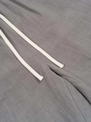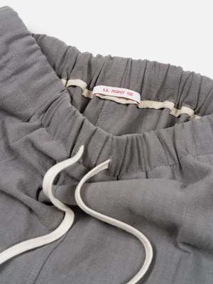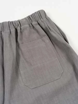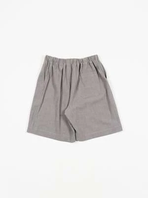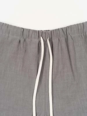 The Barrack Shorts in Grey are a classic, mid-length short with a high-rise constructed from a textured and breathable Ramie fabric. The Barrack Shorts have a baggy yet elegant fit and feature an elastic waistband with a natural drawstring cord. The shorts are finished with two side slash pockets and one back pocket.