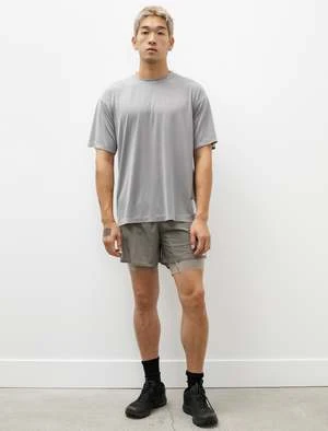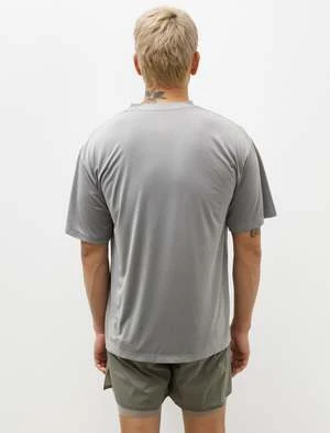 Satisfys signature super lightweight, relaxed fitting Auralite t-shirt cut from Deltapeak, a moisture wicking, fast drying, recycled technical polyester from Japan; this edition features in a light fossil grey. Features subtle iridescence throughout, adding a sense of visual texture while also aiding to keep you safe on early morning or late night runs. The relaxed, roomy fit prevents constriction with a subtle draped sensibility while the lightness of the fabric leaves the body feeling free to move. Completed with reflective logo details at the back shoulder and the chest for improved visibility in dark conditions; finished with shoulder-to-shoulder seam taping at the back neckline for maximum comfort.