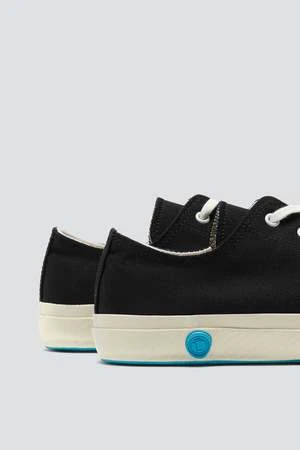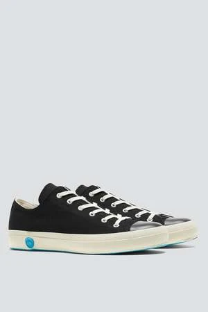 Unisex handmade canvas and rubber lace-up shoes with bright blue pebbled soles. Made using the ancient Japanese technique of ‘ka-ryu’, each shoe is finished in a kiln for 70 minutes to meld the rubber and canvas. Each shoe is embossed individually with a stamp bearing the brand logo, resembling the traditional sealing wax used by manufacturers in the past.