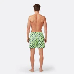 Classic style Tom & Teddies with an elasticated waist and tough drawcord, these zingy green and blue swim shorts feature our bold Starfish print from the Aquatic Collection. These are trunks that are destined for long sunny beach days, and theyll definitely perk-up any summer vacation kit with a blast of bright color! Team them with a navy tee and wear them all day long, in or out of the water.