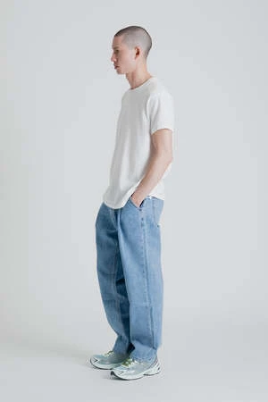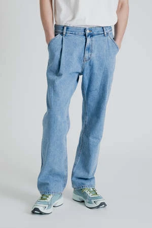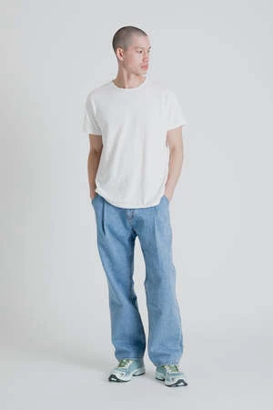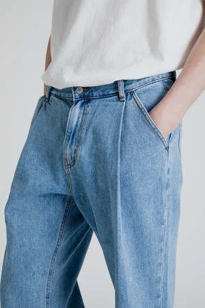 Uniform Bridge Wide One Tuck Denim Pants in Light Indigo