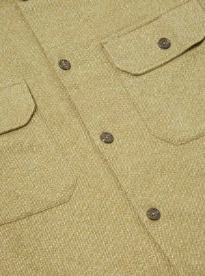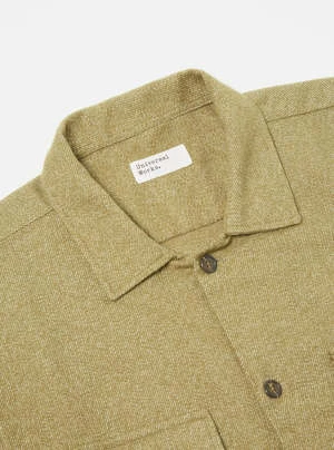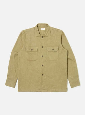 Inspired by a visit to a Japanese fast food joint, this is a UW version of a mid-century inspired American ‘Garage’ work shirt. It is oversized with a flat square collar and a straight hem. It also has short split sides for a boxy loose fit, and two large pockets with button-closure flaps. Winter ready!