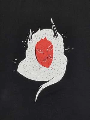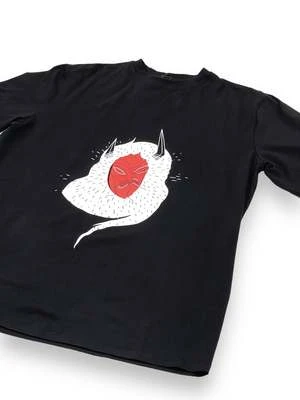 Loose-fit t-shirt with bespoke print designed by ron Dimn, a Hungarian artist and tattoist. The pattern is in hommage to the ‘Busjrs’ tradition of the village of Mohcs in Hungary, a six day ritual where people dress up in monstrous costumes to chase away winter and evil spirits.